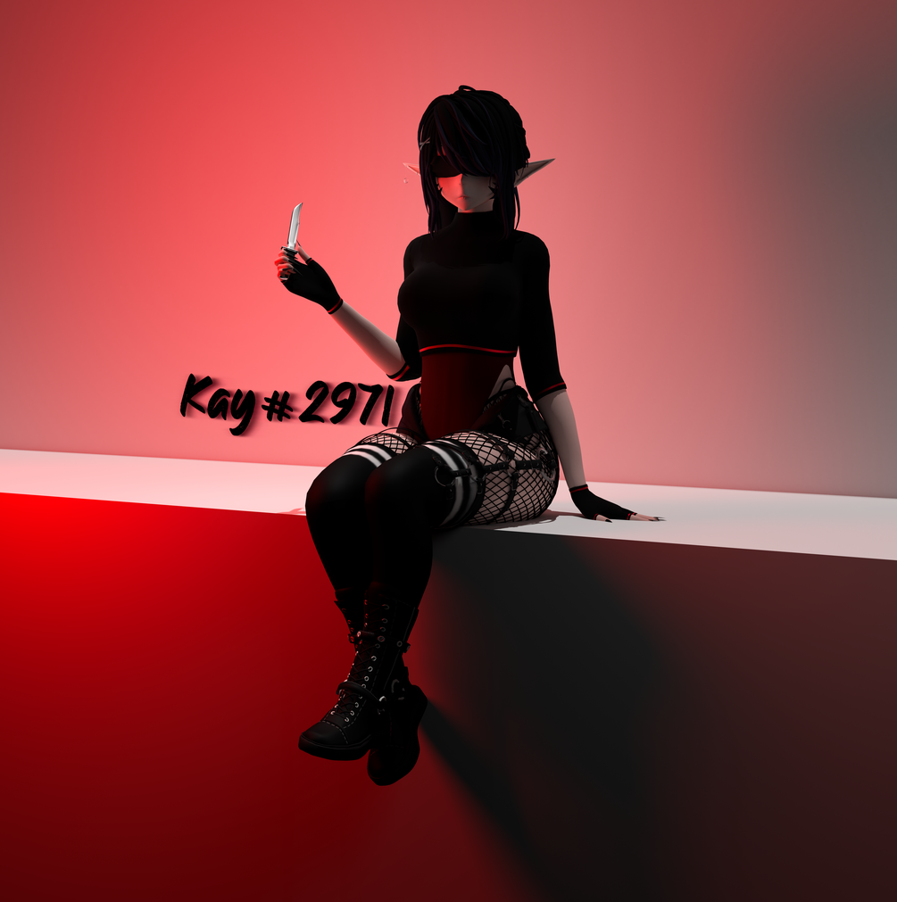 - Material swap (black + red to white + red): Hair, blindfold, sweater, bodysuit, gloves, fishnet, knife, shorts, socks, boots